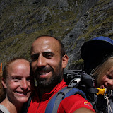 Avec maintenant un peu l'habitude quand tu sais que tu as 1140m de denivelle a te manger en 5h aller retour tu ne vas pas faire du macrame. Surtout que les temps affiches on les eclate et que tu as 20 kg scotche dans le dos et qu'aujourd'hui t'as pas trop de jambes. ca faisait en plus 5 j que nous n'avions comme seules activites physiques violentes L'APERO c'est vous dire!!! Et bien on en a bien chier mes amis. La premiere partie est horrible, elle vous decapite les jarrets, des marches a n'en plus finir a la peruvienne. Le paysage est enorme certe, on double tout le monde mais c notre rythme et on en bave balaise. Je sue comme si on m'avait passe au karcher, mes jambes me brulent et ma fille qui dit " papa ca monte un peu". Le soleil est bien present, pas un nuage, tous les monts sont enneiges c superbe.En 1h on est au Sealy hut Ok mais c pas finit mon lapin. Plus tu montes et plus la montagne se decouvre et tu ne vois jamais la fin!!!